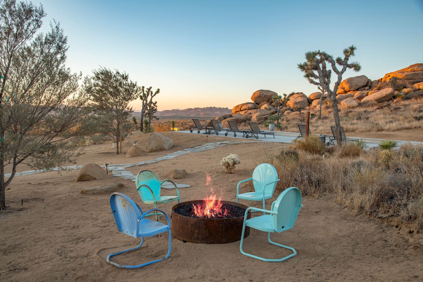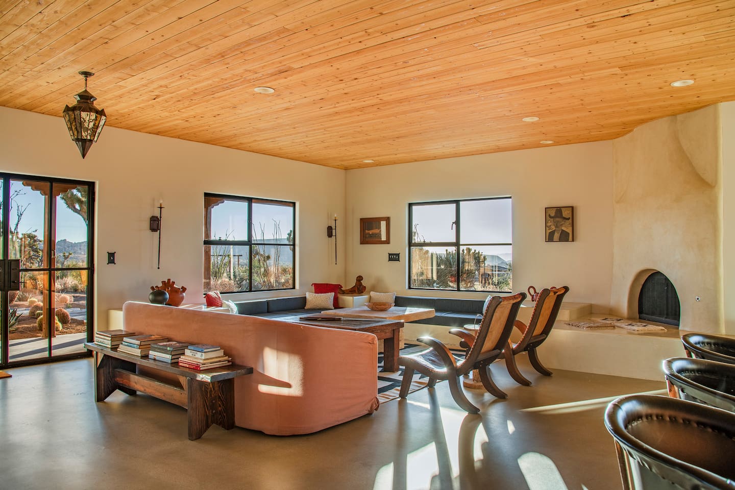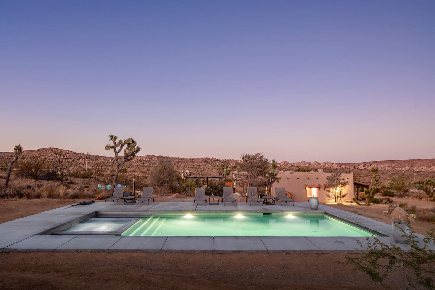 Here’s what to expect at The Bust’n B Ranch: ⭑ 10 private acres surrounded by stunning boulders and wide-open views ⭑ Saltwater pool with built-in spa (pool heat available Oct–Apr for an additional fee; spa heat included) ⭑ No light pollution - perfect for stargazing ⭑ Cedar Sisu Sauna handcrafted from Western red cedar by Amish and Finn-American artisans in Ohio ⭑ Nordic Wave Cold Plunge - a state-of-the-art vertical plunge with advanced filtration and ozone sanitation for pristine water every time ⭑ Copper outdoor shower ⭑ Primary suite with king bed, soaking tub, oversized rain shower, and walk-in closet ⭑ Three queen guest rooms, one with en-suite bath ⭑ Third full bathroom with walk-in shower ⭑ Handmade Mexican tile and natural finishes throughout ⭑ Casper mattresses with Frette linens, towels, and pillows ⭑ Spacious living room with large Smart TV and oversized sofa for movie nights ⭑ Game room with ping pong table and gym setup ⭑ Family-friendly amenities including Pack ’n Play, high chair, and baby bath ⭑ Fully equipped chef’s kitchen with Viking stove, oven, and ample cookware ⭑ Illy coffee provided, with both espresso machine and French press options ⭑ Wraparound porch with shaded lounge seating ⭑ Gas fire pit beneath the stars ⭑ Outdoor BBQ grill and shaded pergola dining area ⭑ Native plant landscaping and private walking paths ⭑ Parking for up to six vehicles and a Level 1 EV charger ⭑ High-speed Starlink Wi-Fi and dedicated workspace ⭑ Pet friendly - two well-behaved dogs welcome Please note: The home accommodates up to 10 guests comfortably (ideal for up to 8 adults). We’re happy to answer any questions about the layout or sleeping arrangements. Horses: We don’t currently have horses at the ranch, but it was once a working horse property. Horses are welcome if you’re traveling with your own, and we’re happy to recommend great horseback riding options in the area. Great Location: 12 mins ➔ Pioneertown Mountains Preserve 14 mins ➔ Pappy + Harriet’s 15 mins ➔ La Copine 20 mins ➔ The Integratron 20 mins ➔ Frontier Café 25 mins ➔ Joshua Tree National Park Visitors Center 50 mins ➔ Palm Springs Airport Local Experiences: Guests can explore a range of local experiences including: - In-home sound baths - In-home massage or energy work - Guided hikes and nature walks - Outdoor yoga or breathwork - Private chef dinners - Stargazing tours - Horseback riding We'd be happy to connect you with our local favorites.