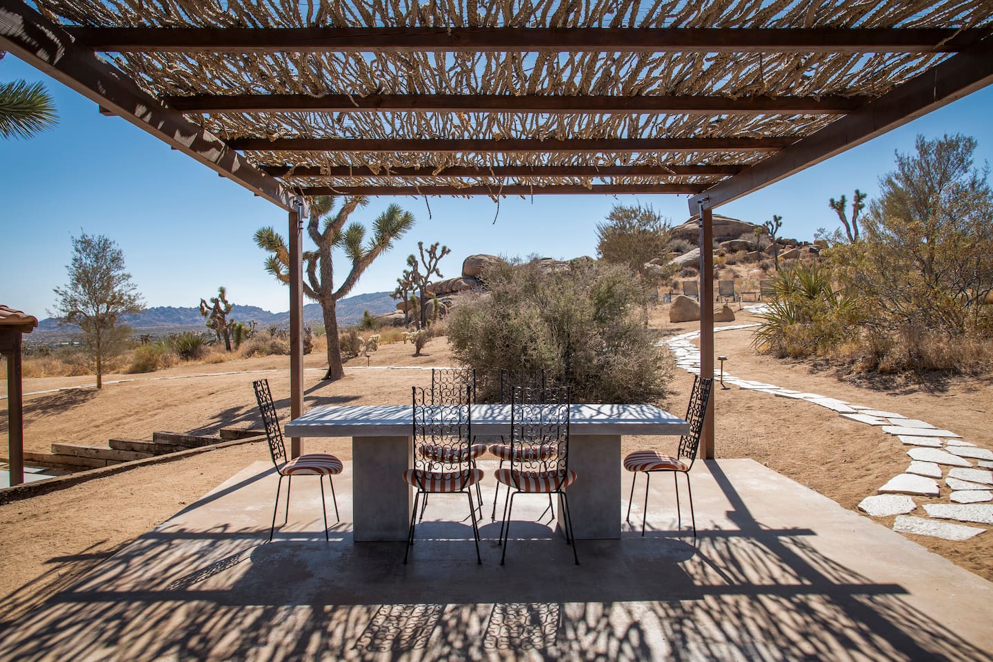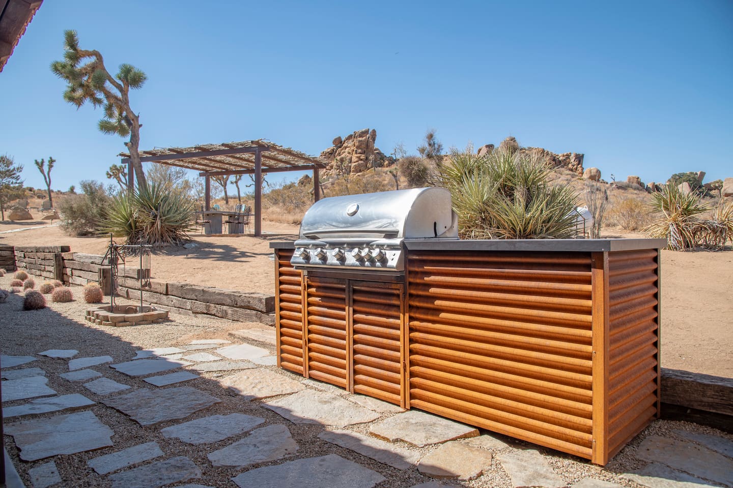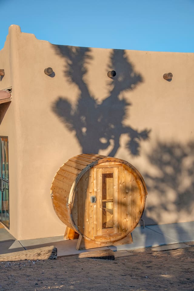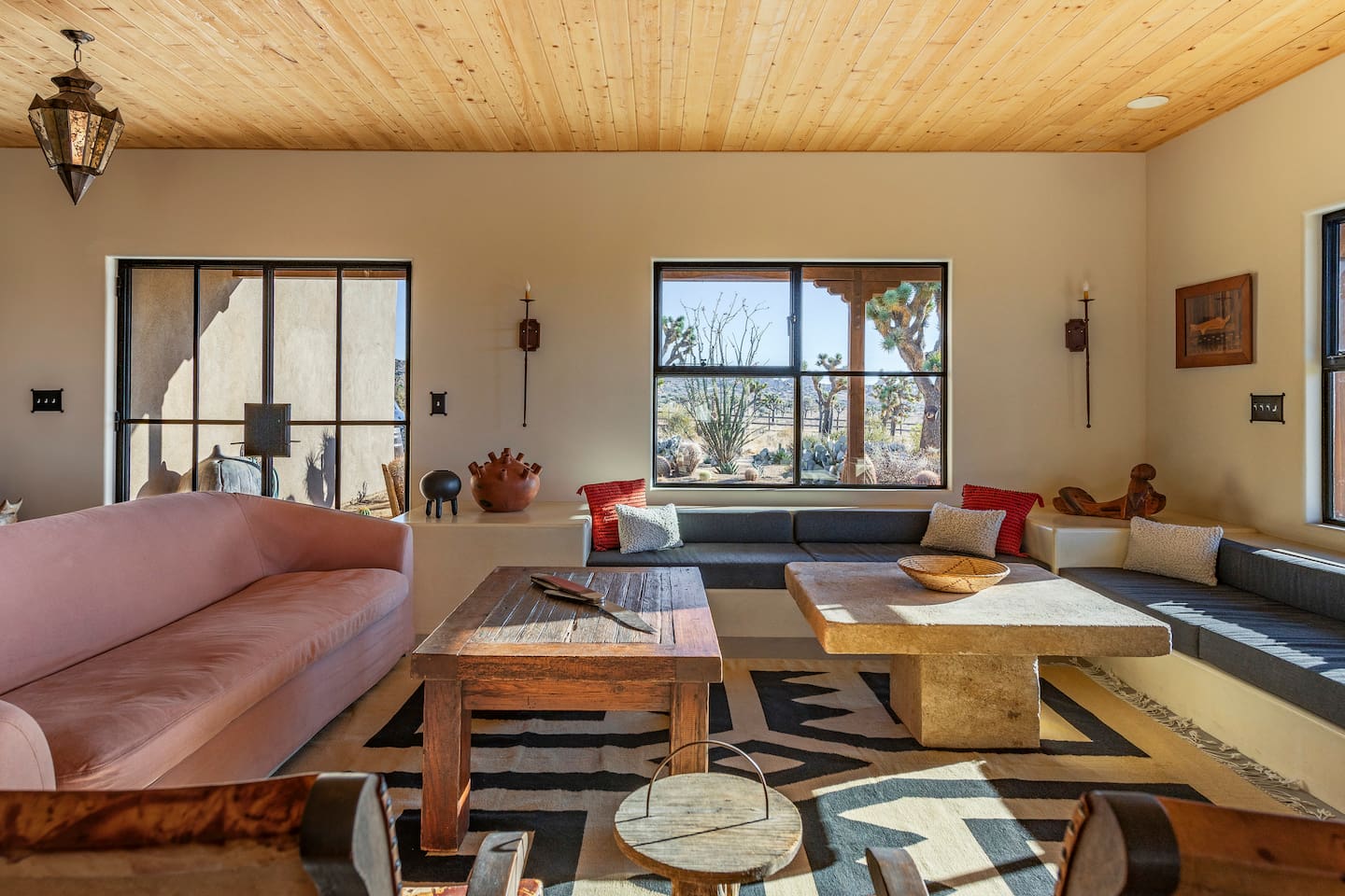 Here’s what to expect at The Bust’n B Ranch: ⭑ 10 private acres surrounded by stunning boulders and wide-open views ⭑ Saltwater pool with built-in spa (pool heat available Oct–Apr for an additional fee; spa heat included) ⭑ No light pollution - perfect for stargazing ⭑ Cedar Sisu Sauna handcrafted from Western red cedar by Amish and Finn-American artisans in Ohio ⭑ Nordic Wave Cold Plunge - a state-of-the-art vertical plunge with advanced filtration and ozone sanitation for pristine water every time ⭑ Copper outdoor shower ⭑ Primary suite with king bed, soaking tub, oversized rain shower, and walk-in closet ⭑ Three queen guest rooms, one with en-suite bath ⭑ Third full bathroom with walk-in shower ⭑ Handmade Mexican tile and natural finishes throughout ⭑ Casper mattresses with Frette linens, towels, and pillows ⭑ Spacious living room with large Smart TV and oversized sofa for movie nights ⭑ Game room with ping pong table and gym setup ⭑ Family-friendly amenities including Pack ’n Play, high chair, and baby bath ⭑ Fully equipped chef’s kitchen with Viking stove, oven, and ample cookware ⭑ Illy coffee provided, with both espresso machine and French press options ⭑ Wraparound porch with shaded lounge seating ⭑ Gas fire pit beneath the stars ⭑ Outdoor BBQ grill and shaded pergola dining area ⭑ Native plant landscaping and private walking paths ⭑ Parking for up to six vehicles and a Level 1 EV charger ⭑ High-speed Starlink Wi-Fi and dedicated workspace ⭑ Pet friendly - two well-behaved dogs welcome Please note: The home accommodates up to 10 guests comfortably (ideal for up to 8 adults). We’re happy to answer any questions about the layout or sleeping arrangements. Horses: We don’t currently have horses at the ranch, but it was once a working horse property. Horses are welcome if you’re traveling with your own, and we’re happy to recommend great horseback riding options in the area. Great Location: 12 mins ➔ Pioneertown Mountains Preserve 14 mins ➔ Pappy + Harriet’s 15 mins ➔ La Copine 20 mins ➔ The Integratron 20 mins ➔ Frontier Café 25 mins ➔ Joshua Tree National Park Visitors Center 50 mins ➔ Palm Springs Airport Local Experiences: Guests can explore a range of local experiences including: - In-home sound baths - In-home massage or energy work - Guided hikes and nature walks - Outdoor yoga or breathwork - Private chef dinners - Stargazing tours - Horseback riding We'd be happy to connect you with our local favorites.
