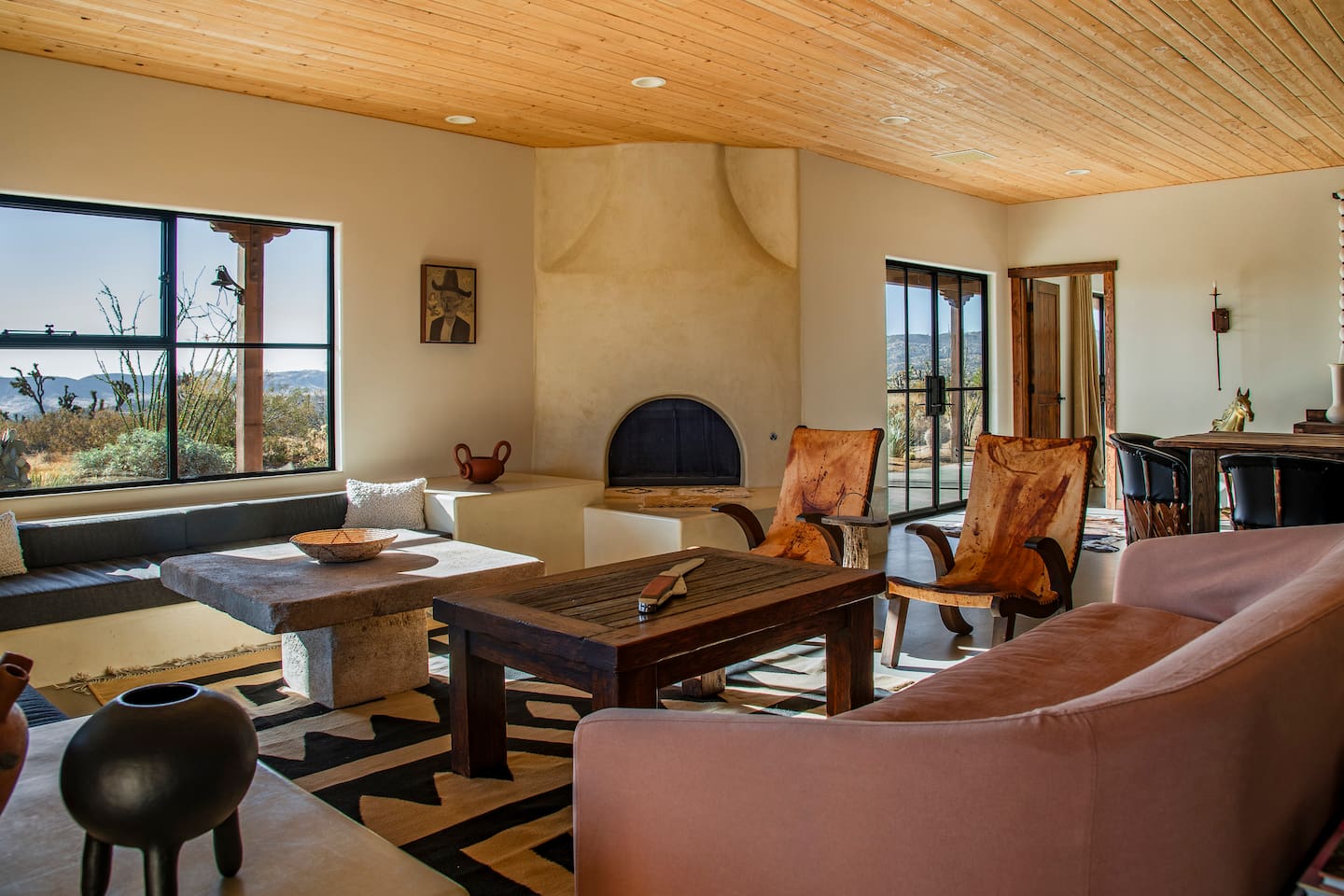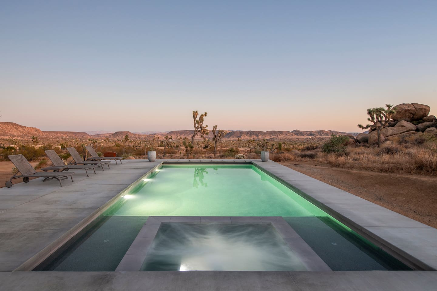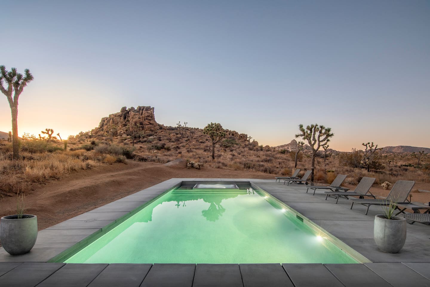 Featured in Architectural Digest & Elle Decor, Bust’n B Ranch is a design-forward 4-bedroom retreat surrounded by boulders and sweeping desert views. Unwind in true wellness style, flow between the saltwater pool, spa, cold plunge, & cedar sauna, or gather by the fire pit beneath star-filled skies. Inside, enjoy Frette linens, high-speed WiFi, a big-screen TV for cozy movie nights, & a chef’s kitchen with premium appliances & generous counter space, every detail designed for comfort and calm.