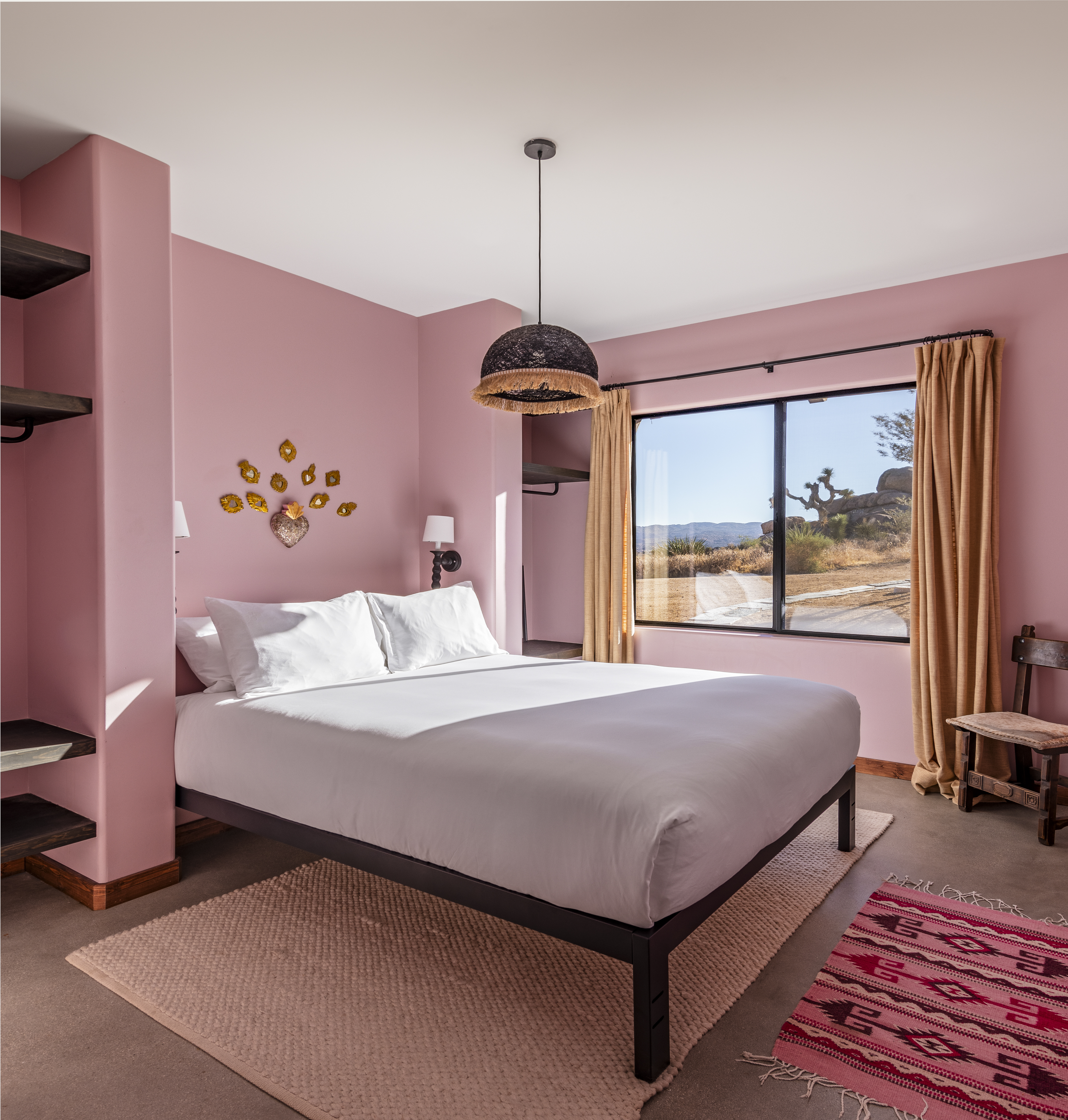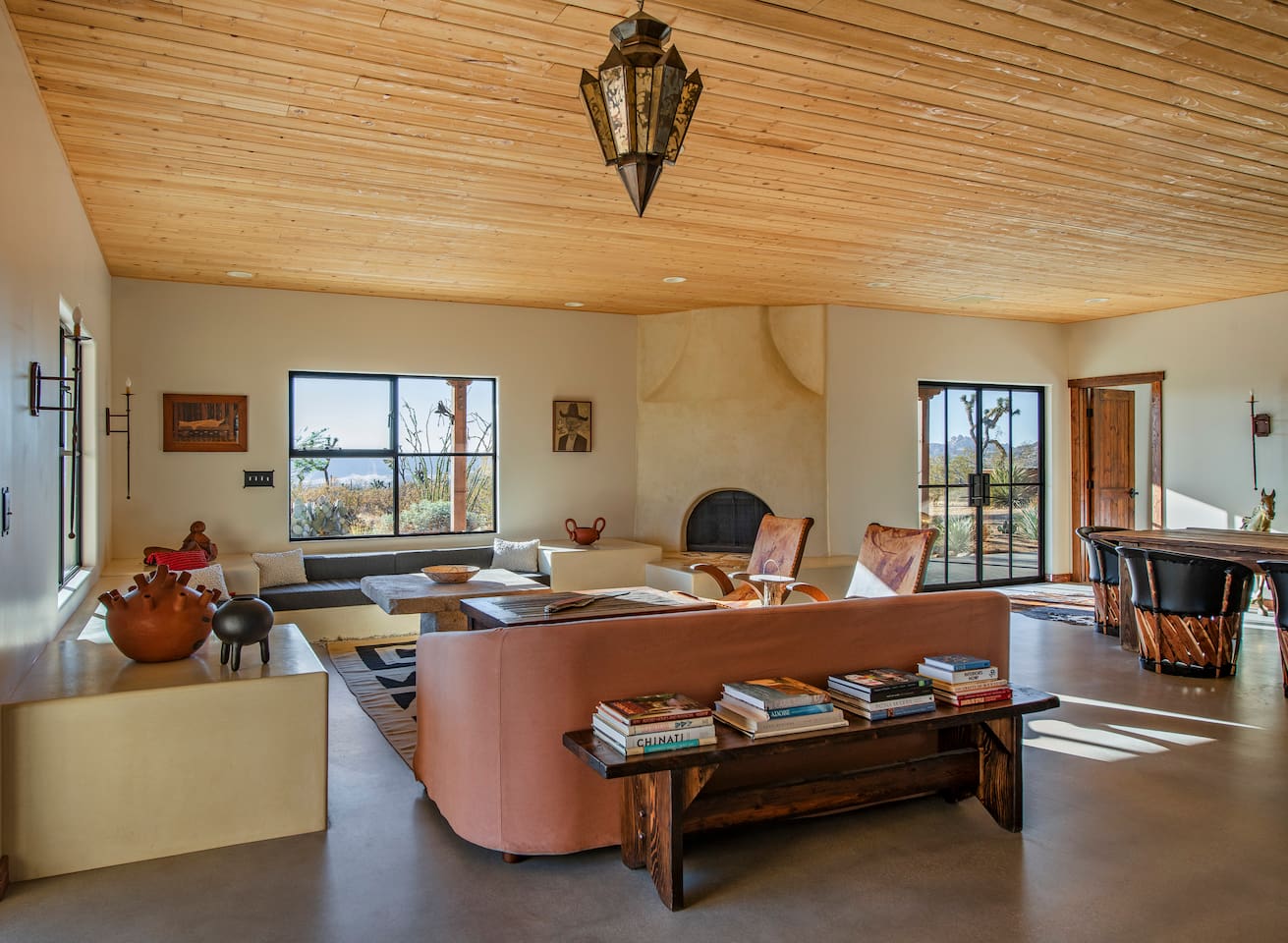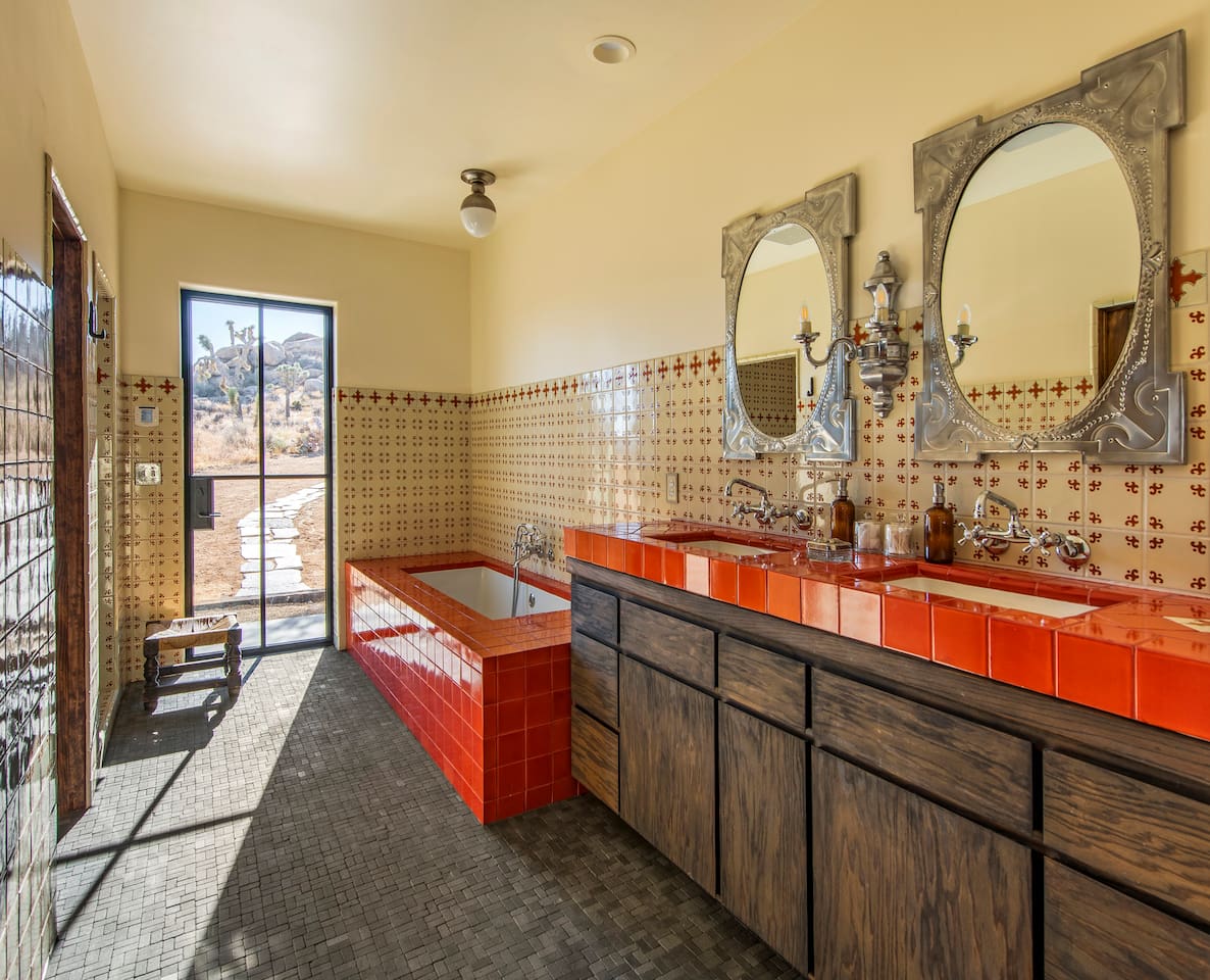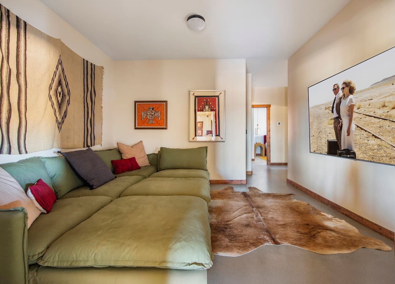 Featured in Architectural Digest & Elle Decor, Bust’n B Ranch is a design-forward 4-bedroom retreat surrounded by boulders and sweeping desert views. Unwind in true wellness style, flow between the saltwater pool, spa, cold plunge, & cedar sauna, or gather by the fire pit beneath star-filled skies. Inside, enjoy Frette linens, high-speed WiFi, a big-screen TV for cozy movie nights, & a chef’s kitchen with premium appliances & generous counter space, every detail designed for comfort and calm.