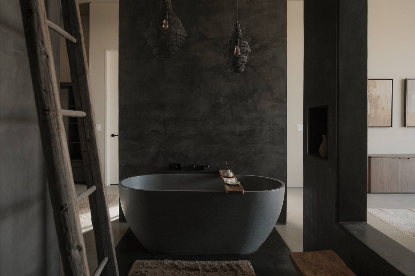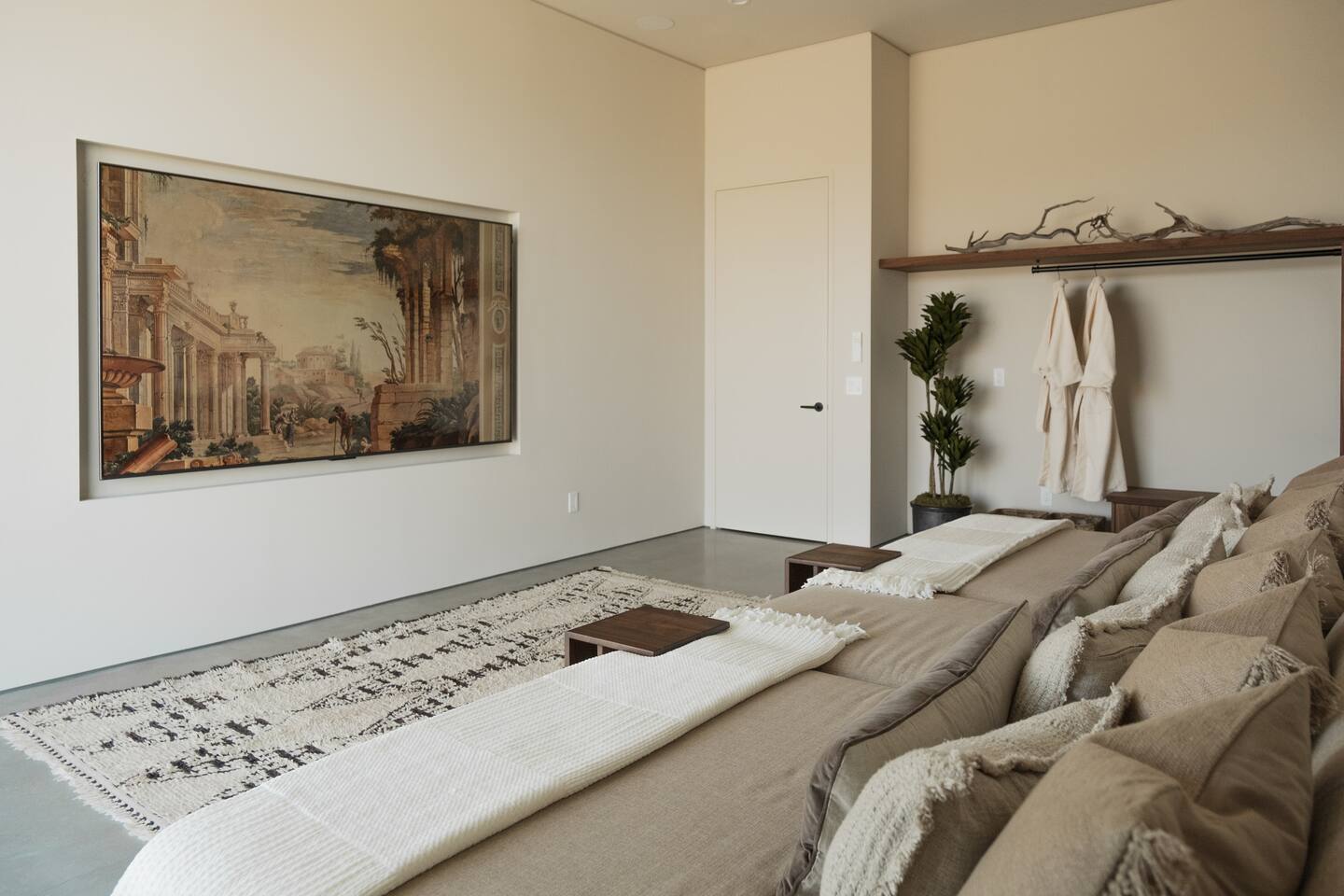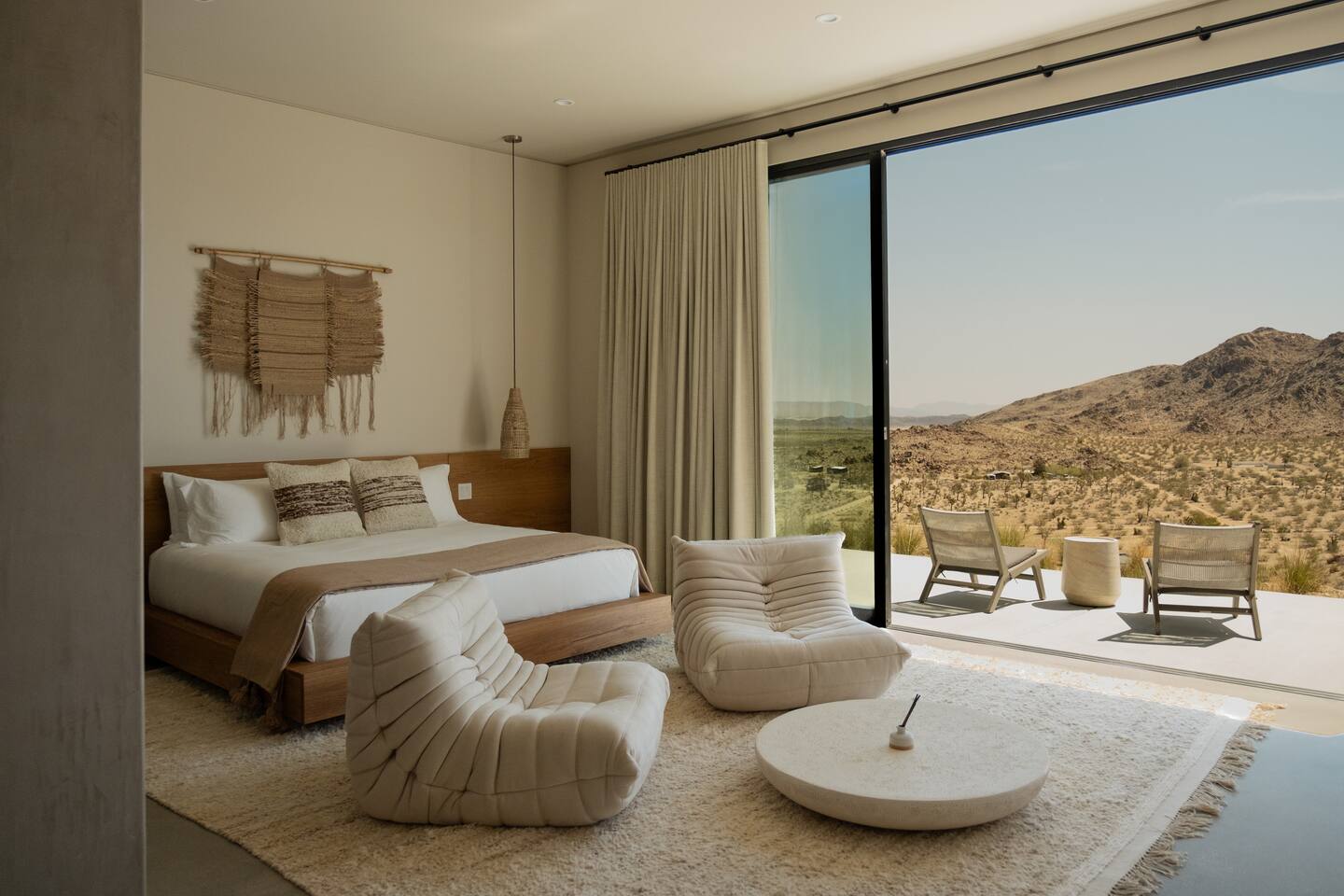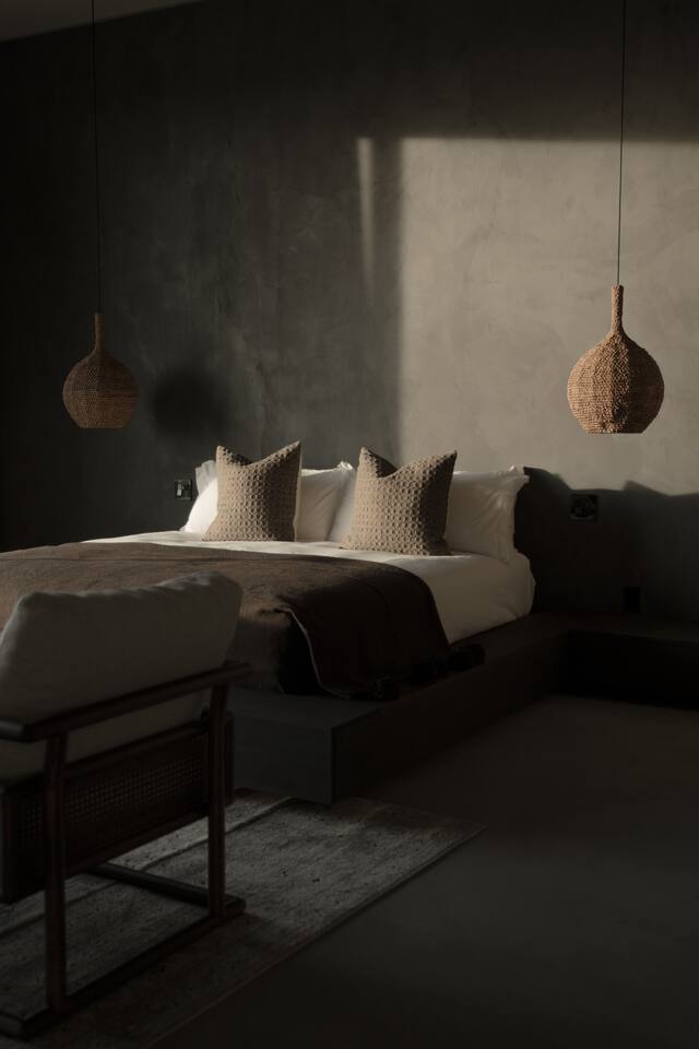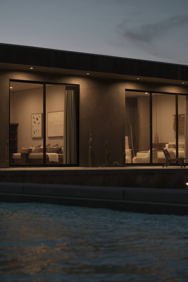 Sleeping Arrangements: Please reference our bedroom photos as you plan your sleeping arrangements as two queen beds are located in the same room. Events and Commercial Photoshoots: Passage Joshua Tree is offered exclusively for overnight stays. Events, gatherings, and commercial photoshoots are not permitted under a standard booking and require a separate agreement. If you’re interested in hosting a photoshoot or event, please reach out to us directly for details on availability and rates. Pool Heating: Should you wish to have the pool heated (84 degrees max) during your stay, please notify us in advance of your arrival. There will be a supplemental per day charge for this service. Pool Heating (84 degrees max) - two day minimum of $300/day ($600 minimum) Spa Heating: Spa heating is always included with each rental (max temp 102 degrees). Pool Service: To keep the pool as pristine as possible, the pool is serviced every Tuesday. Our pool technician will go directly to the backyard to work on the pool in order to respect your privacy. If you are in the pool at the time feel free to ask him to come back at a later time. Early Check-In: If Passage is available for early check-in, we will let you know. Late Check-Out: We are unable to accommodate late checkouts. A stay by @passageplaces in partnership with @aboveandbeyondjt